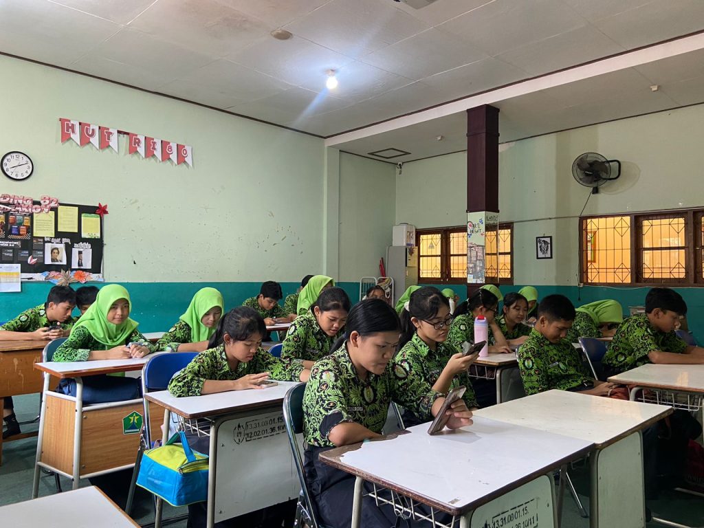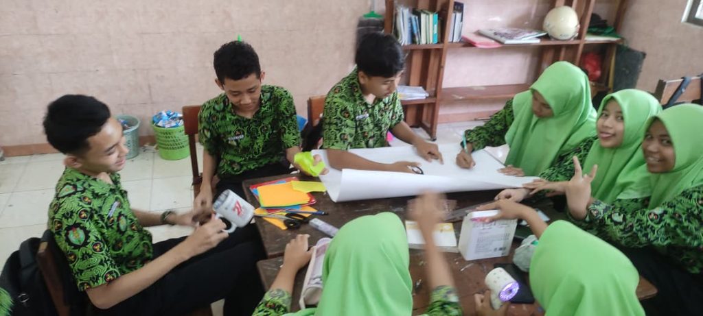 Dari aula siswa melanjutkan kegiatan di kelas masing-masing. Giat di kelas meliputi tes diagnostik, melihat video tentang berbagai macam bencana yang ada di Indonesia, membuat PPT dan mind mapping.