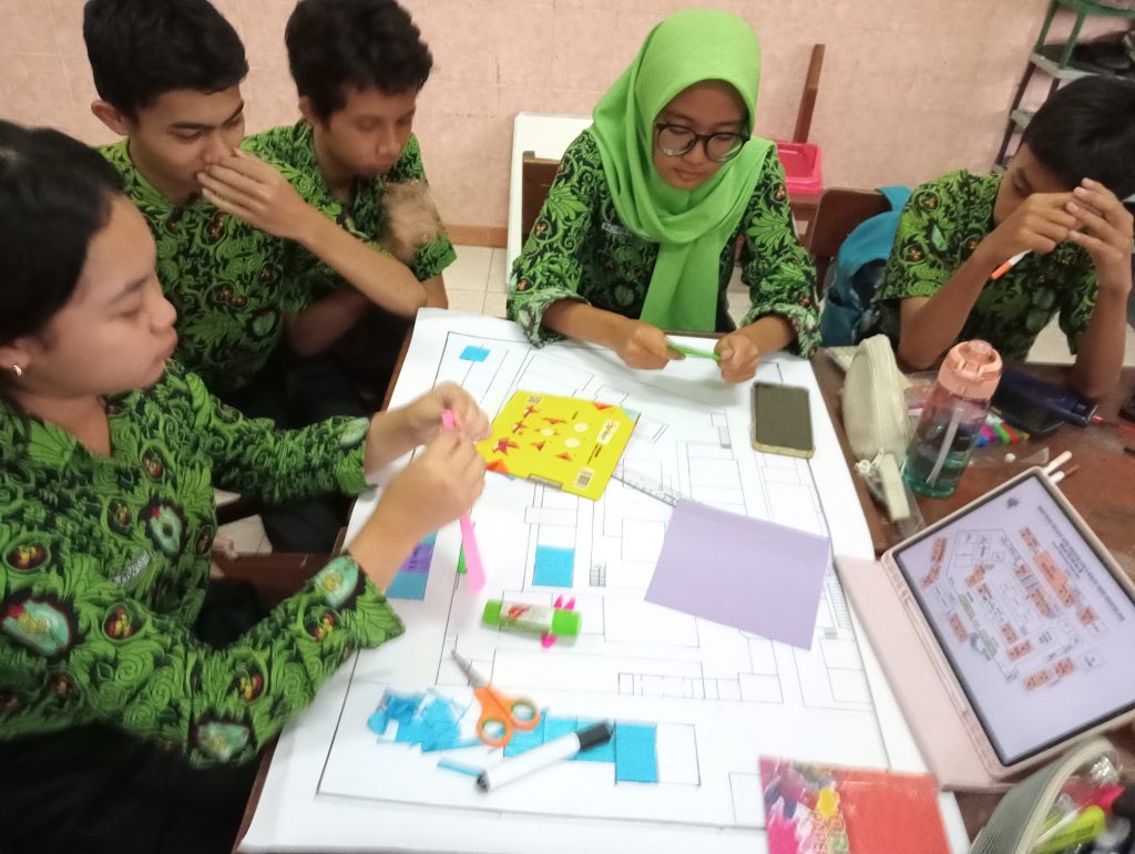 Mapping sekolah dan menggambar jalur evakuasi salah satu kegiatan kokurikuler kelas 8, dokumentasi pribadi