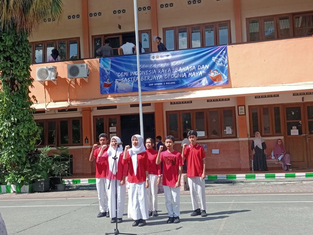 Di atas adalah kesibukan SMP Negeri 3 Malang dalam perayaan Bulan Bahasa yang diadakan pada hari Kamis, 23 Oktober 2025.