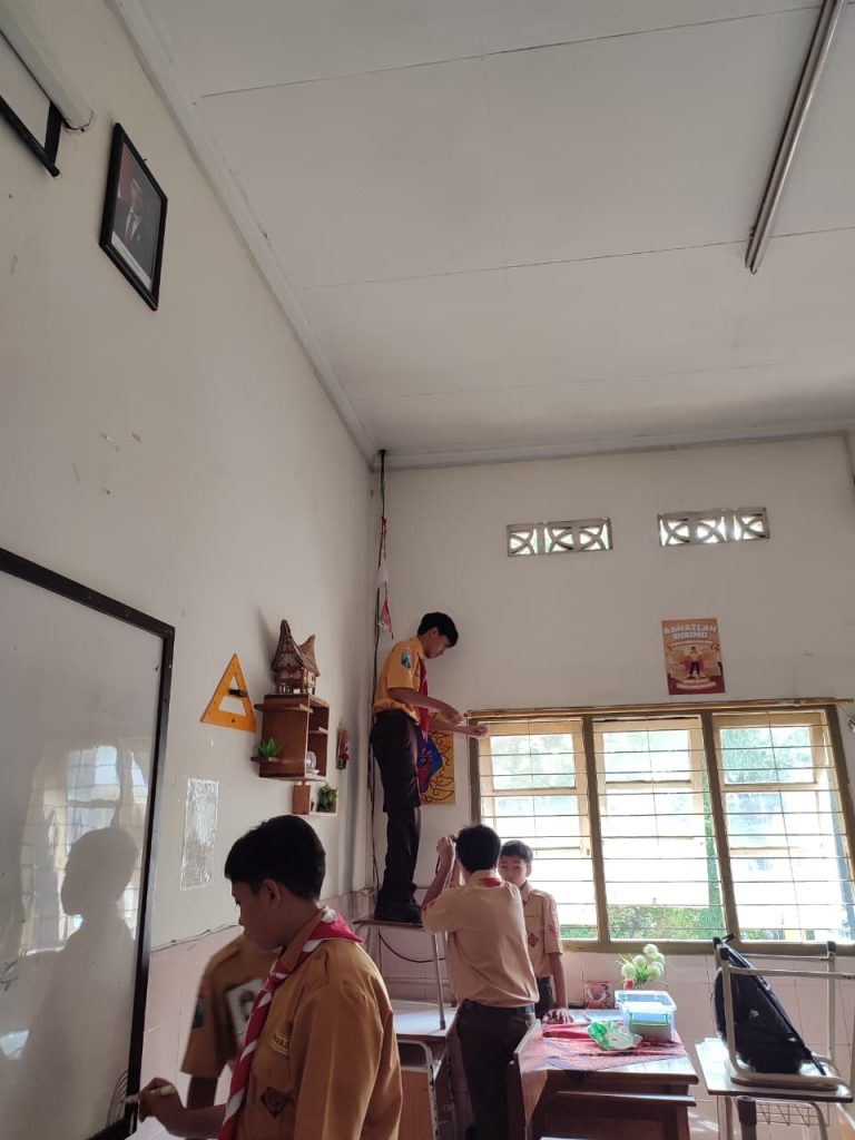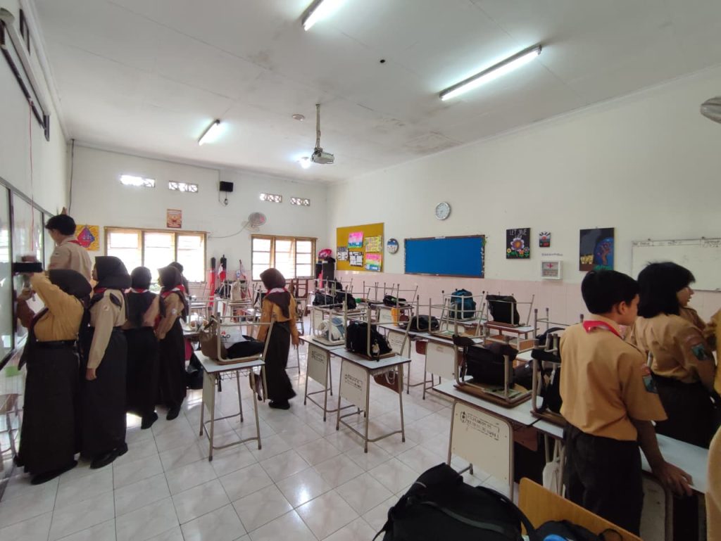 Antusiasme siswa terlihat jelas saat melakukan bersih-bersih kelas. Mereka dengan sigap menyapu, menata bangku, dan menyiapkan media tanam di area depan kelas. Semangat gotong royong tampak menyelimuti seluruh area.